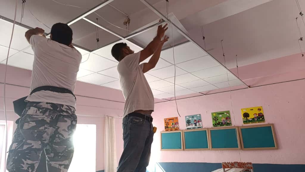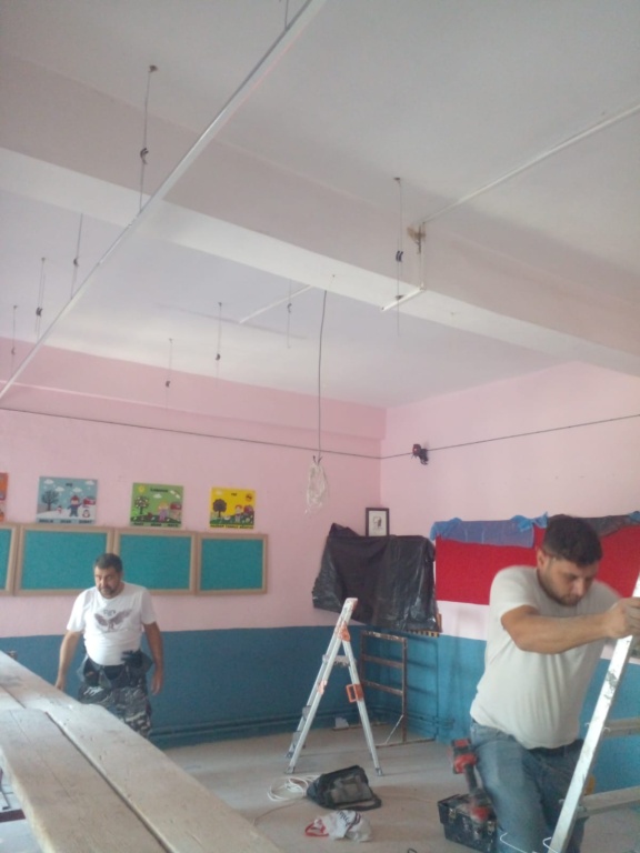 1-A sınıfımıza karepan tavan yapıldı. 3,50 metre olan tavan yüksekliği 1,90'a indirilerek yenilenme işlemi tamamlandı. Sınıf hacminden kazanç elde edilerek ısınma ve serinleme de kazanç sağlandı. Sınıfımızın aydınlatması da daha yüksek performans sağlayacak şekilde düzenlendi. Velilerimize katkılarından ötürü teşekkürlerimizi sunarız.